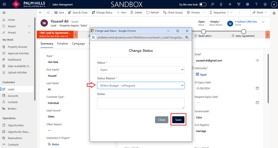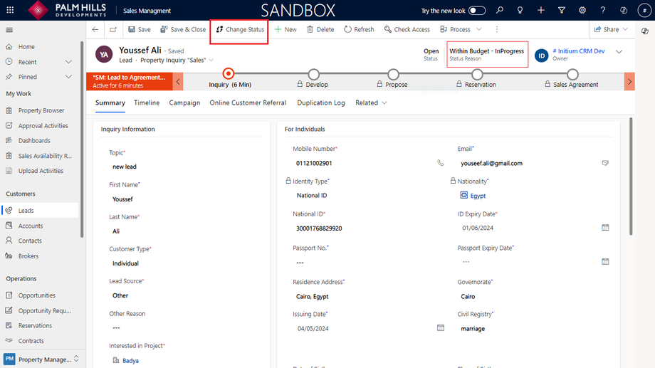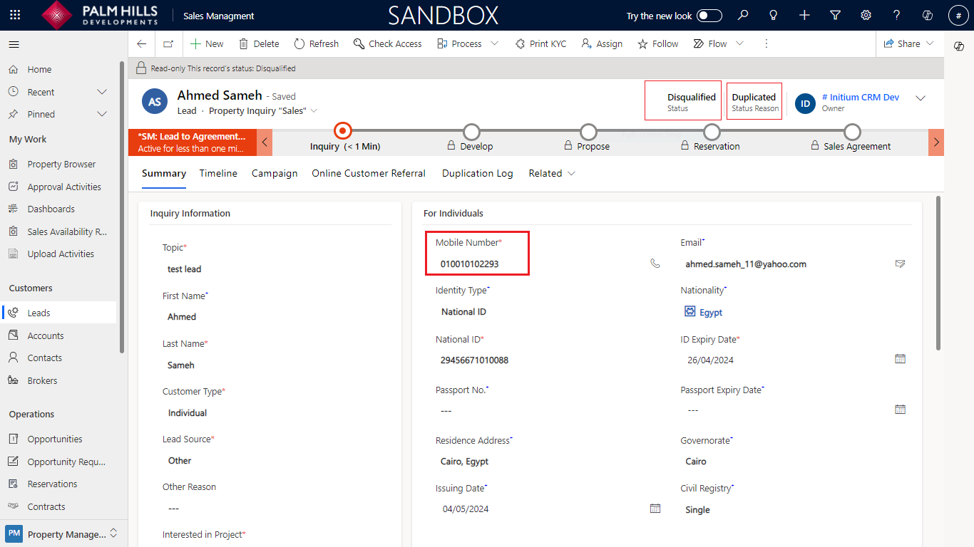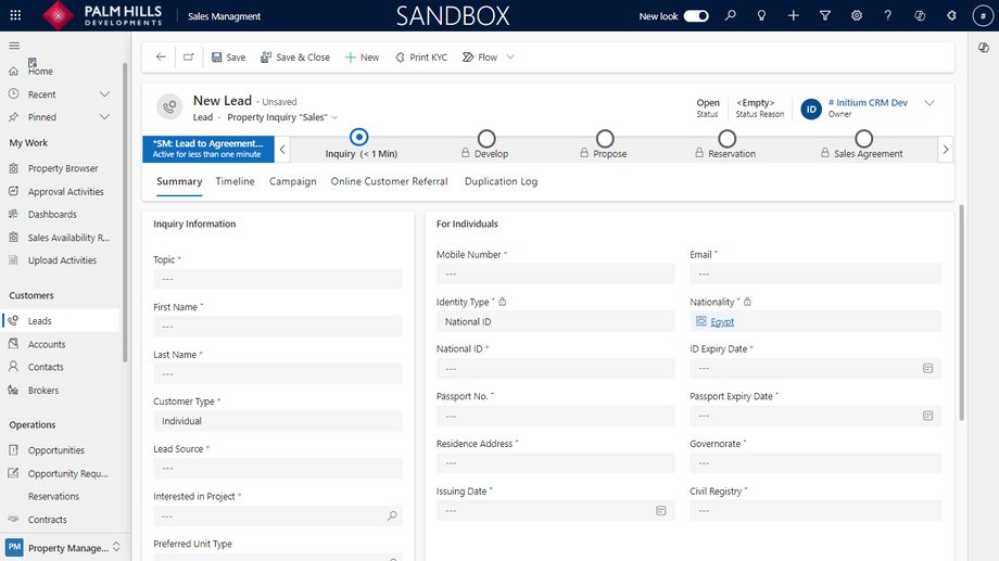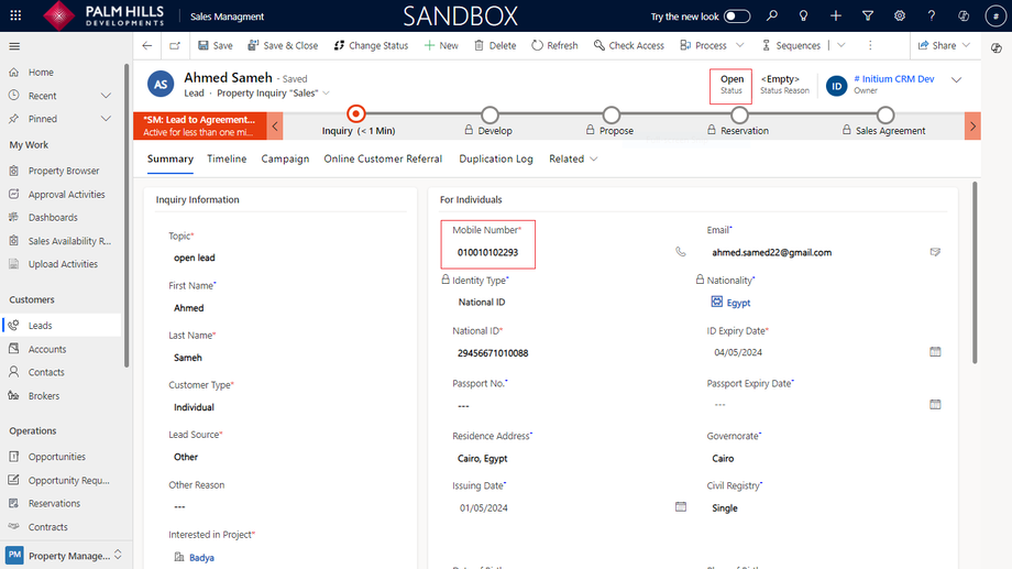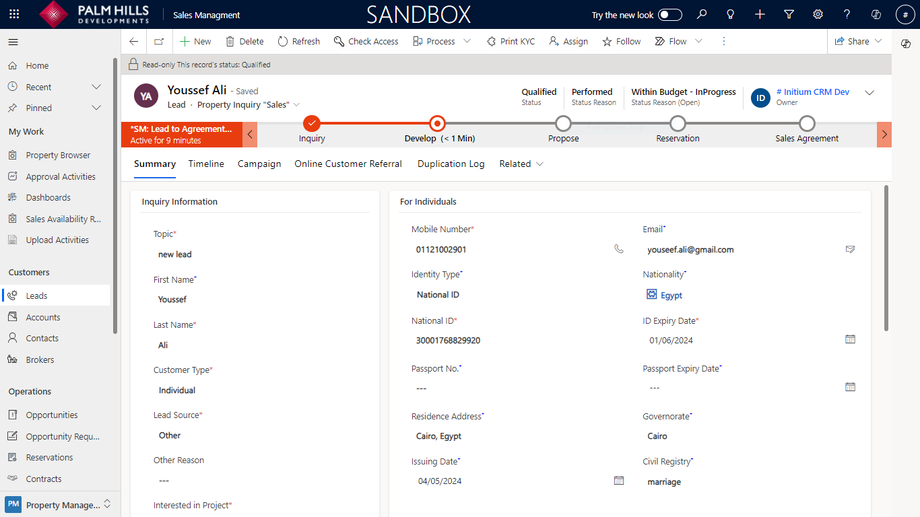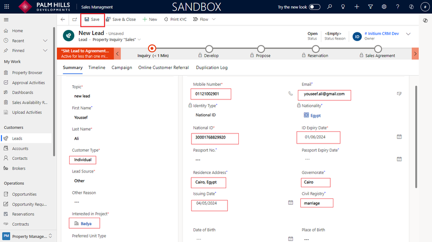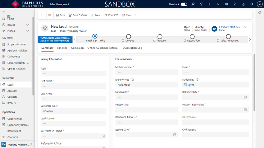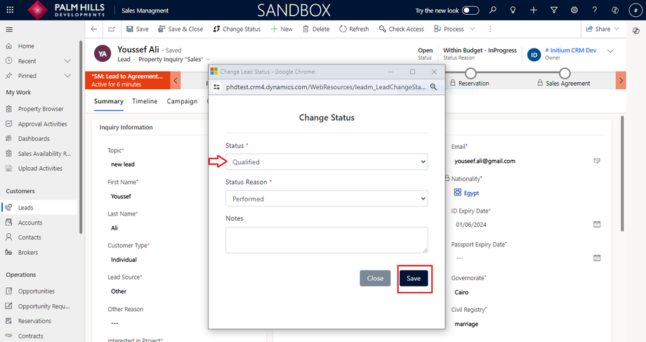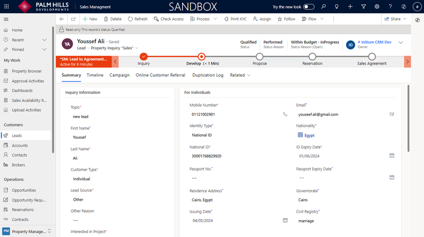 In this section, to add a new lead and qualify them, please enter information about the lead. We will specify the required information for every customer type. Then, you can proceed with lead qualifications. An example of a fully qualified lead cycle, such as for an individual customer, will be provided.