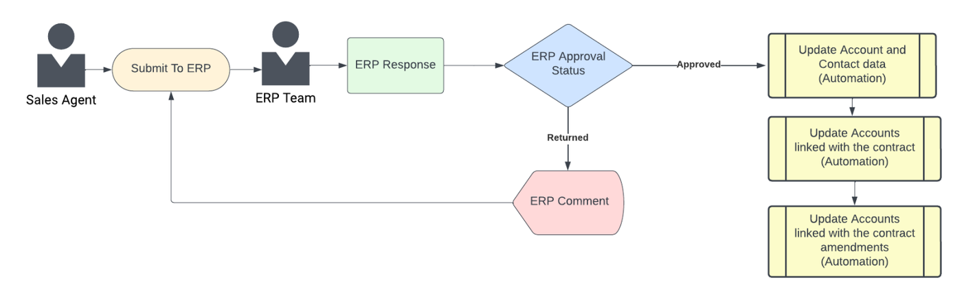 - In case ERP approves the linked account in reservation, the related contract and contract amendment will be updated.