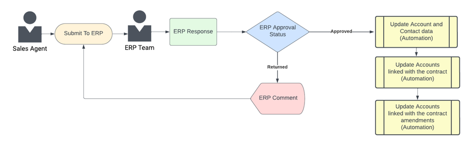 - If it is returned with a comment, the sales agent can make changes and resubmit it to ERP.
