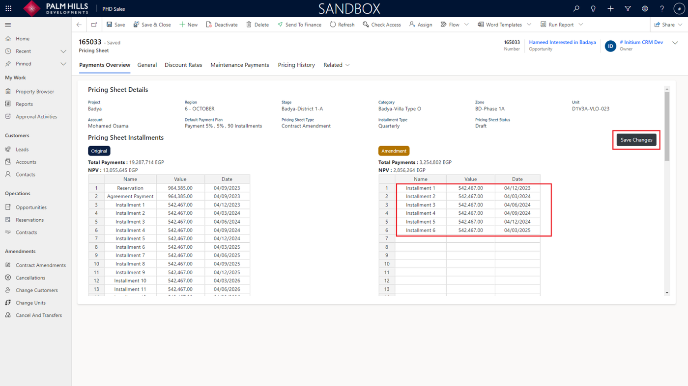 After navigating to the pricing sheet, start by adding the installment details for the Amendment Sheet.