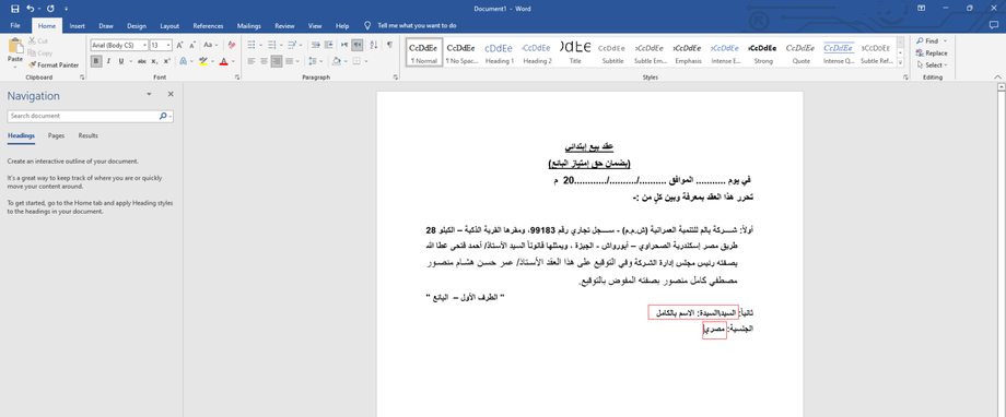 This is an example of a section in the contract where the salutation, full name, and nationality need to be dynamic. You'll need to add placeholders for these details.