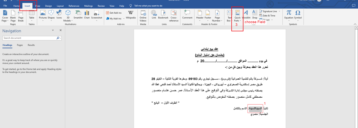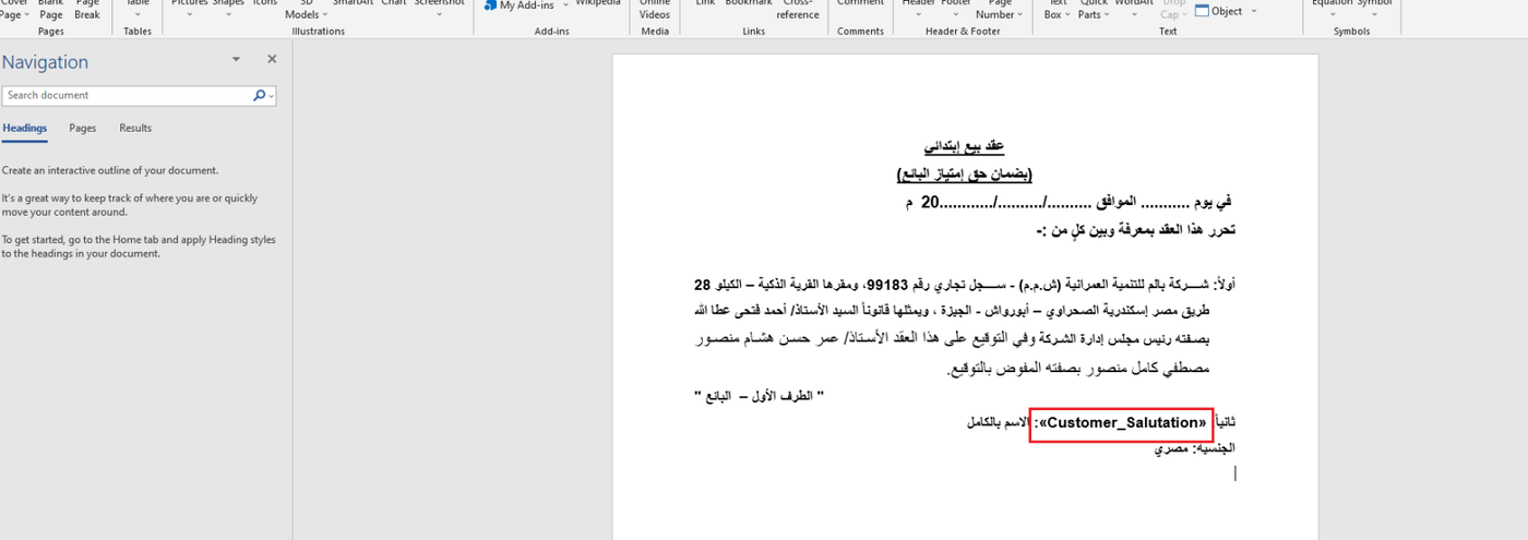 Referring to the full name of the customer in Arabic |