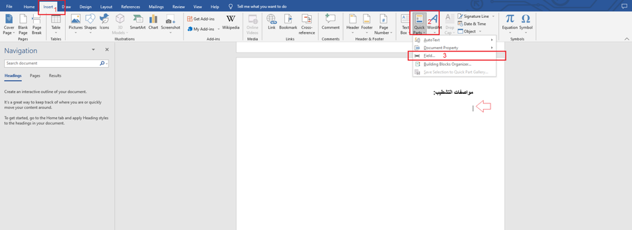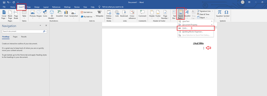 - Choose 'Quick Parts.'