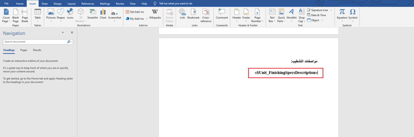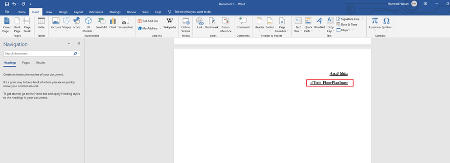 Open the contract file. Insert placeholders where dynamic text from the backend will be placed.