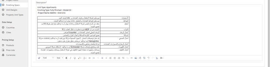 To include rich text placeholder like content in Finishing Specs.