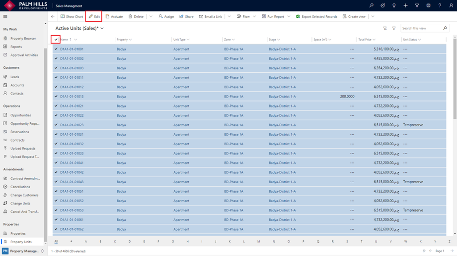 After setting your filter criteria, click on the 'Select all' button, and then proceed to click on the 'Edit' button.