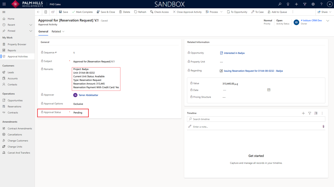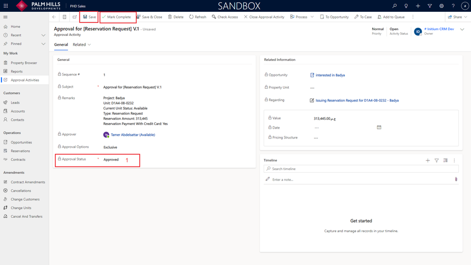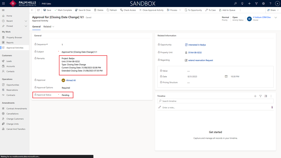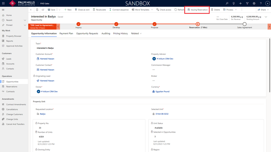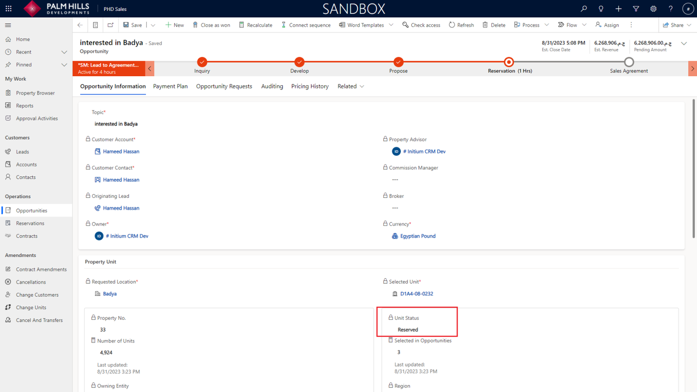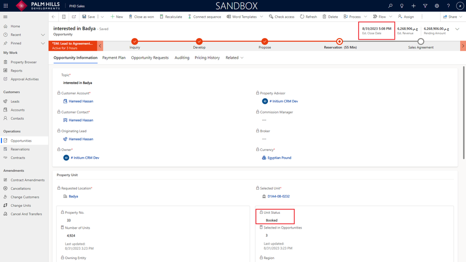 Going back to the opportunity, you can check the 'Estimated Close Date' and 'Unit Status'.