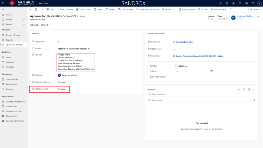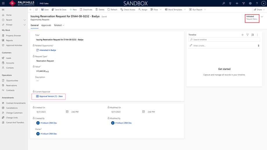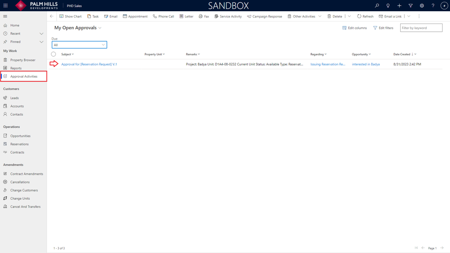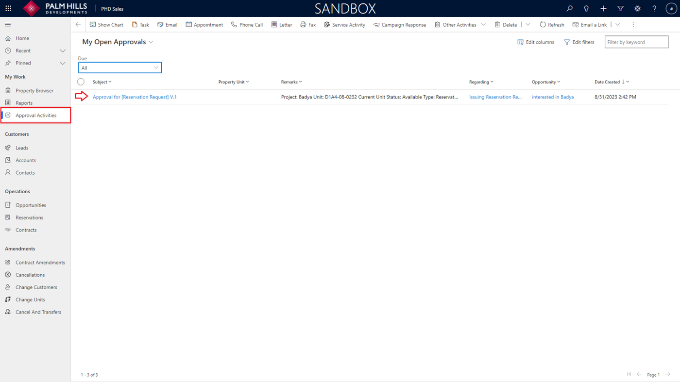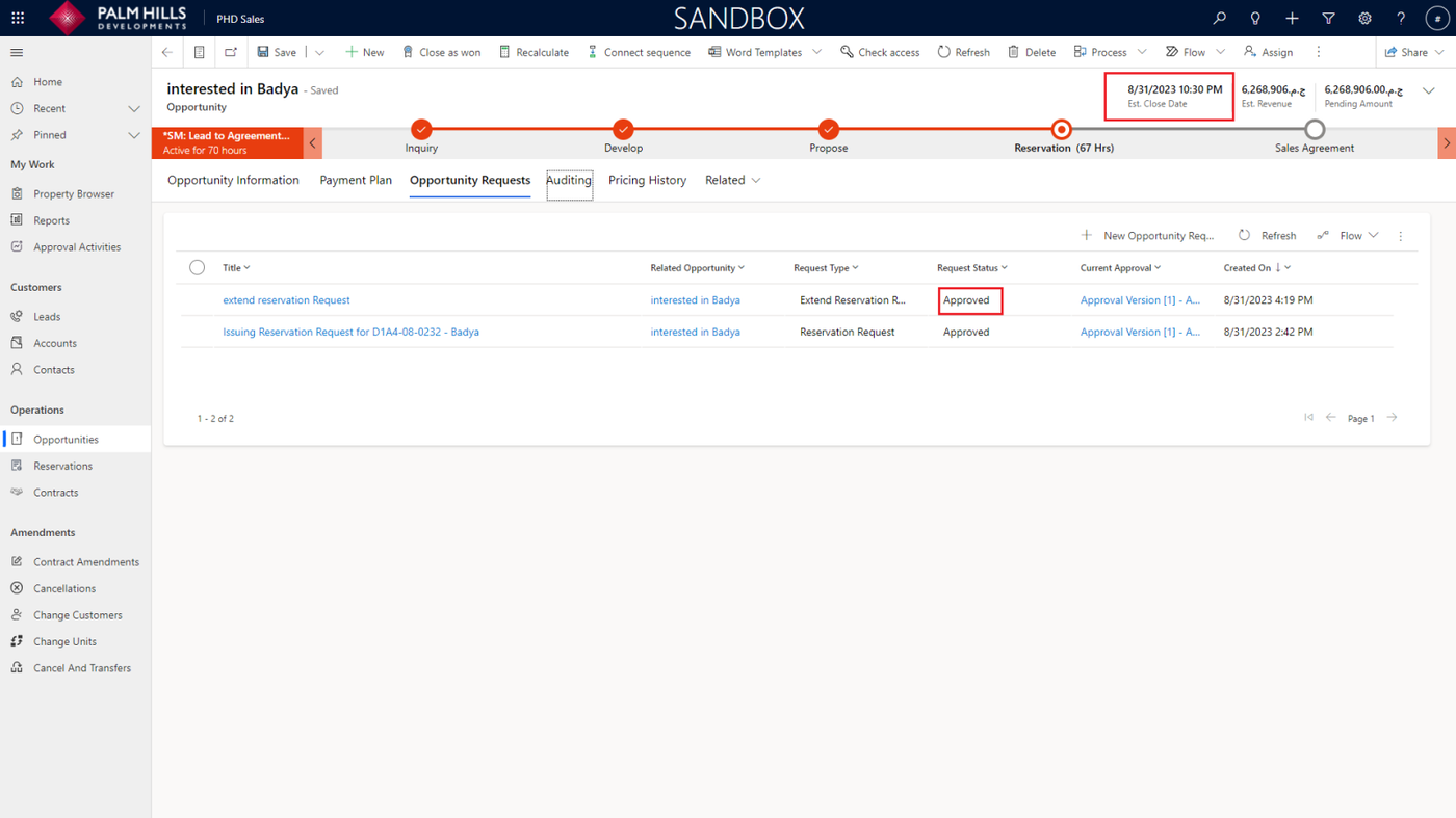 Once you click on 'Issuing Reservation', a new reservation request will be generated and sent for approval. To check the reservation request, navigate to the 'Opportunity Requests' tab.