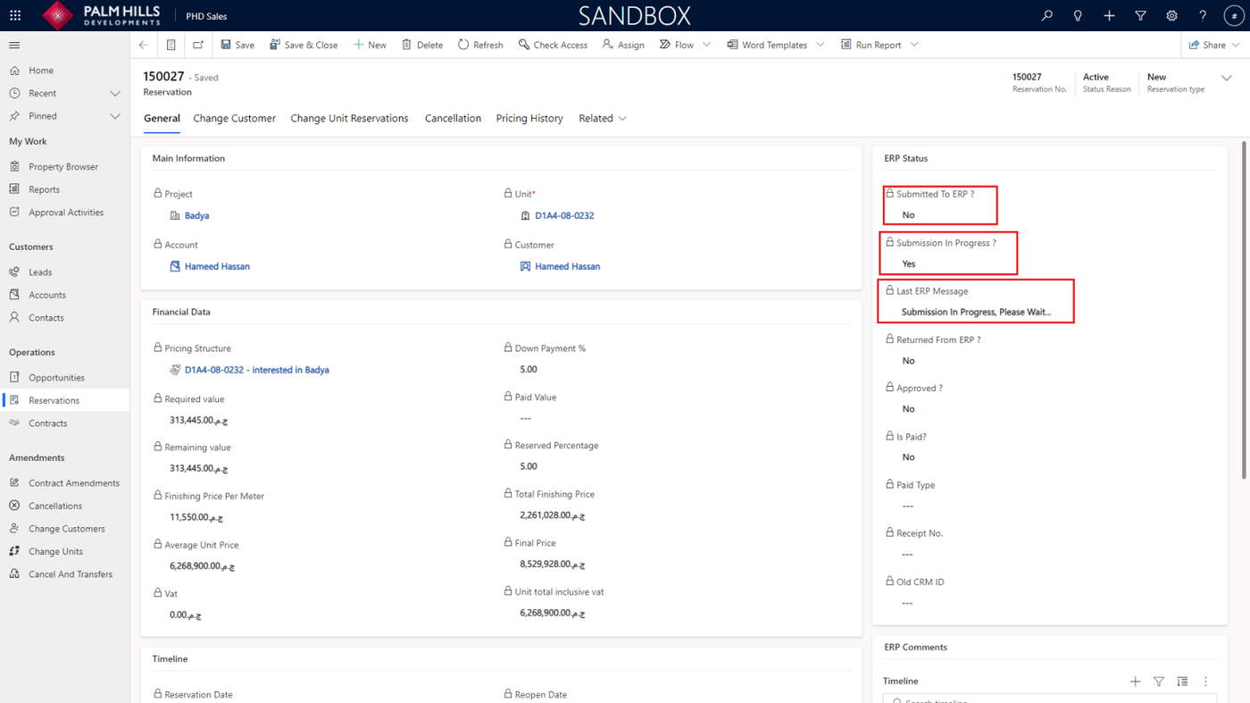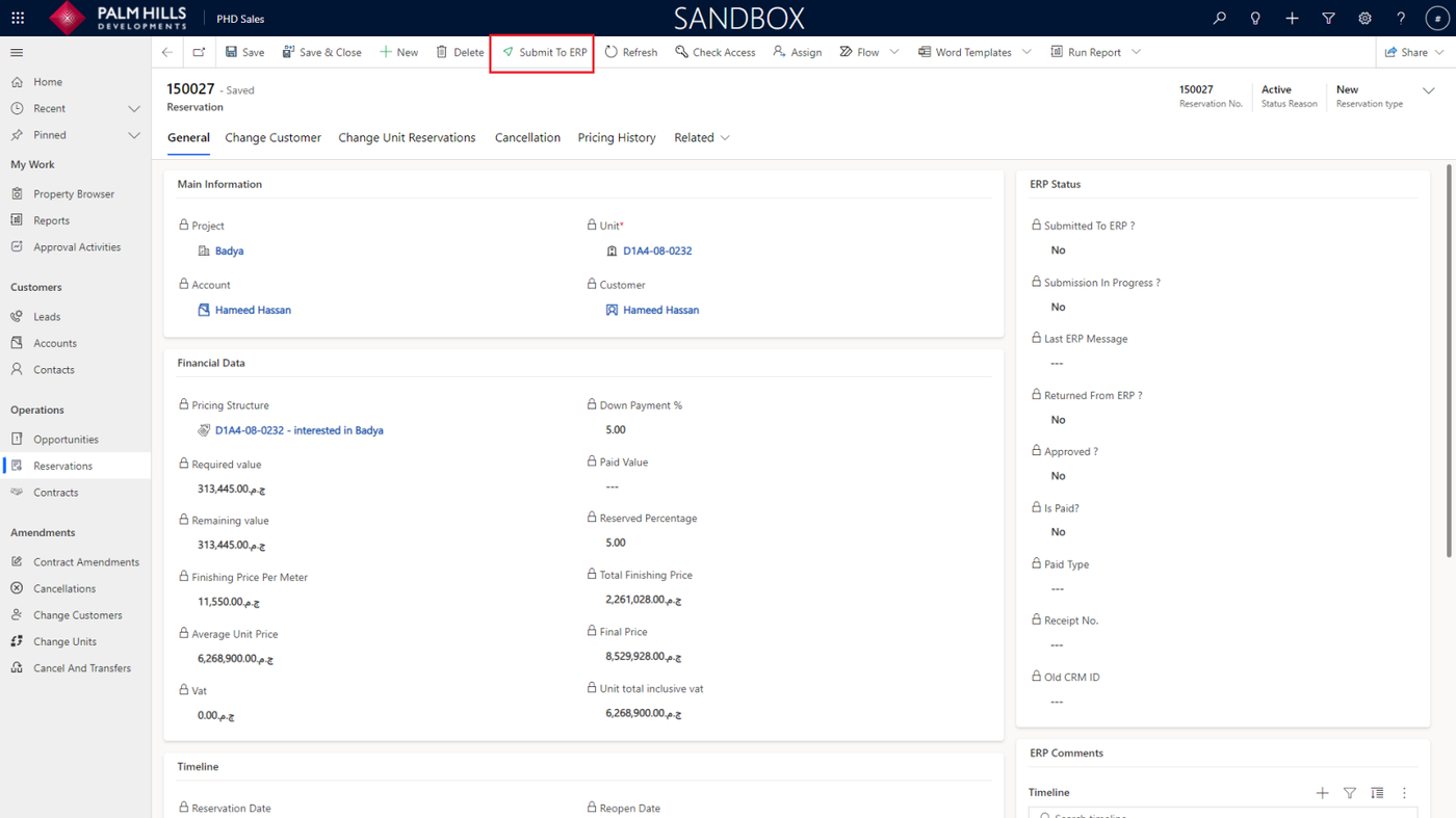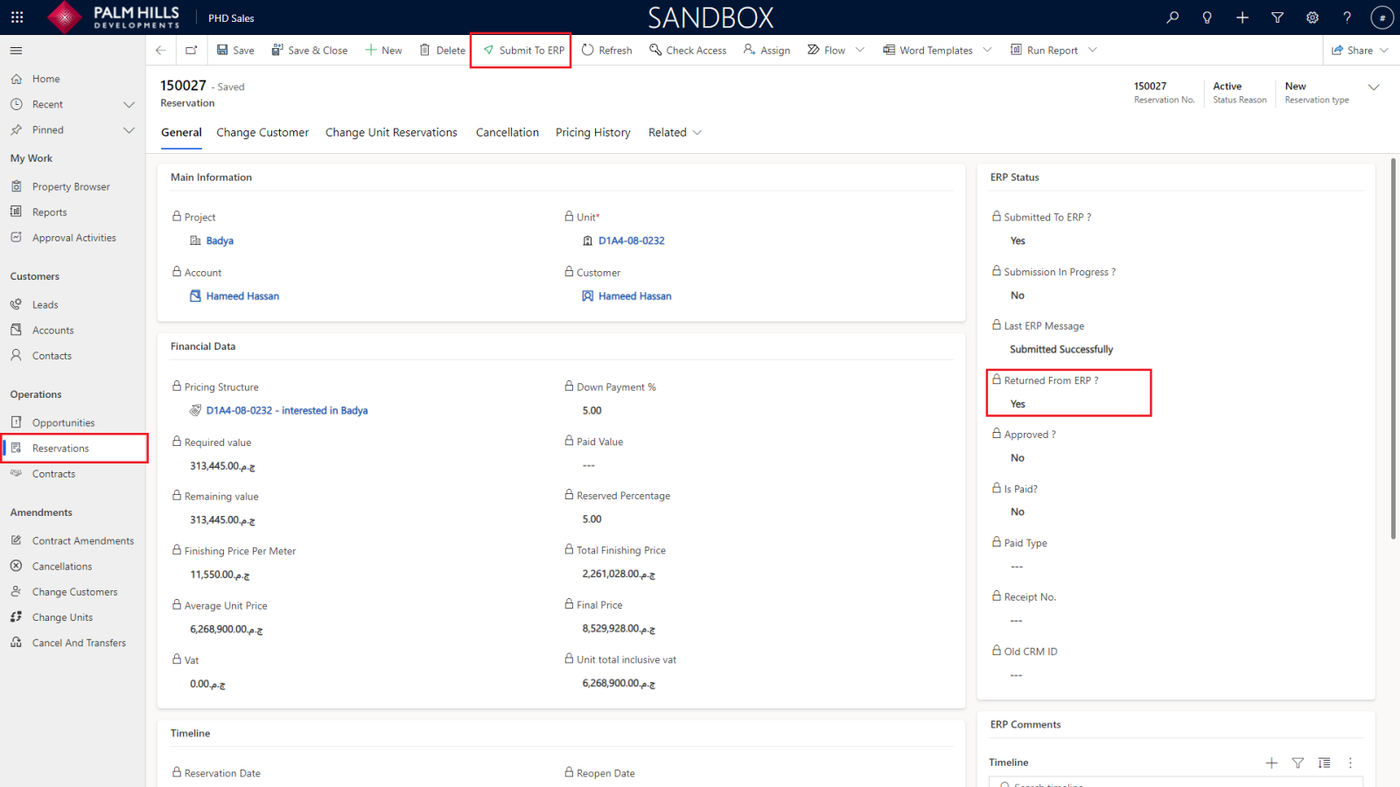 Now, We need to submit the reservation to ERP to get it approved and to determine whether the reservation amount is paid or not.