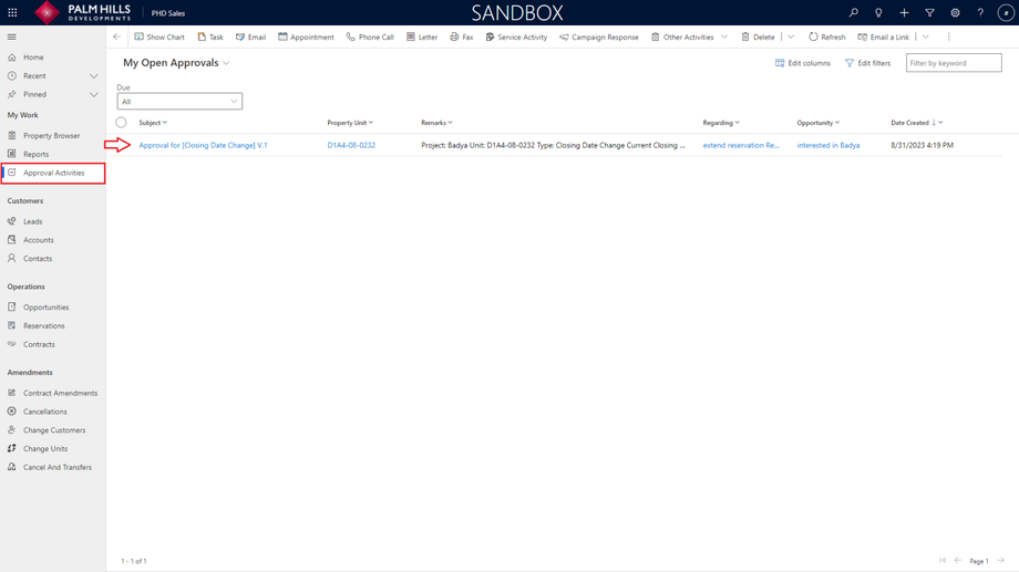 To approve the extend reservation request, navigate to 'Approval Activities' and click on the request.