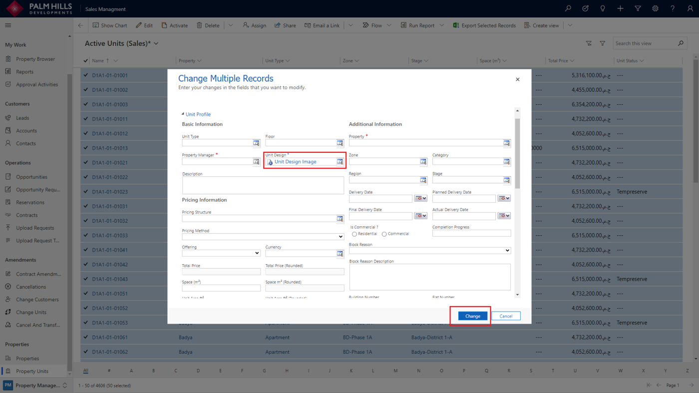Choose Unit Design, then click the 'Change' button that will change all selected units.