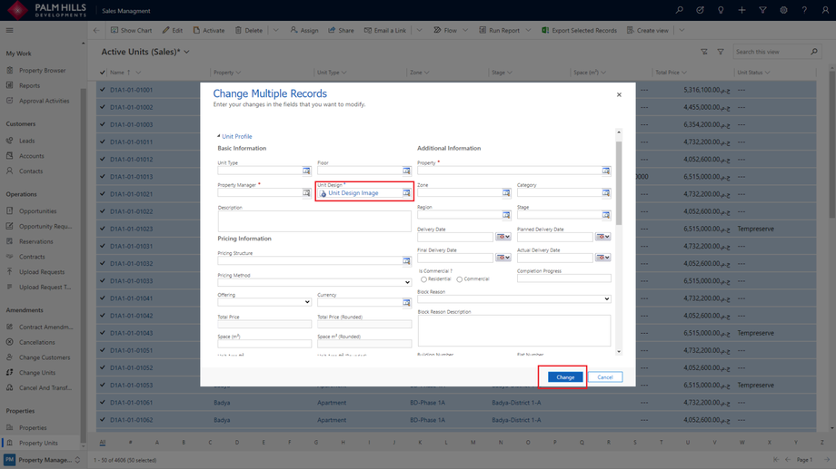 To perform a bulk update for a collection of units with a specific unit design, go to the 'Unit' section and utilize the units filter from the 'Filter' button.